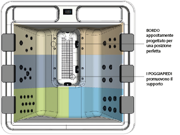 Una minipiscina spaziosa e molto confortevole. Ciascuno troverà il proprio comfort e la propria posizione, da seduti o da sdraiati. Una sensazione di benessere garantita.
